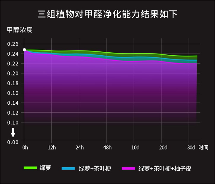 从本次实验得知,无论是绿萝,柚子皮,还是茶叶梗对甲醛净化效果微弱,几乎可以忽略不计,不建议大量用植物作为主要除醛手段。